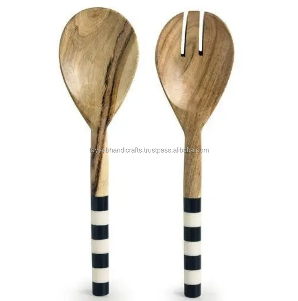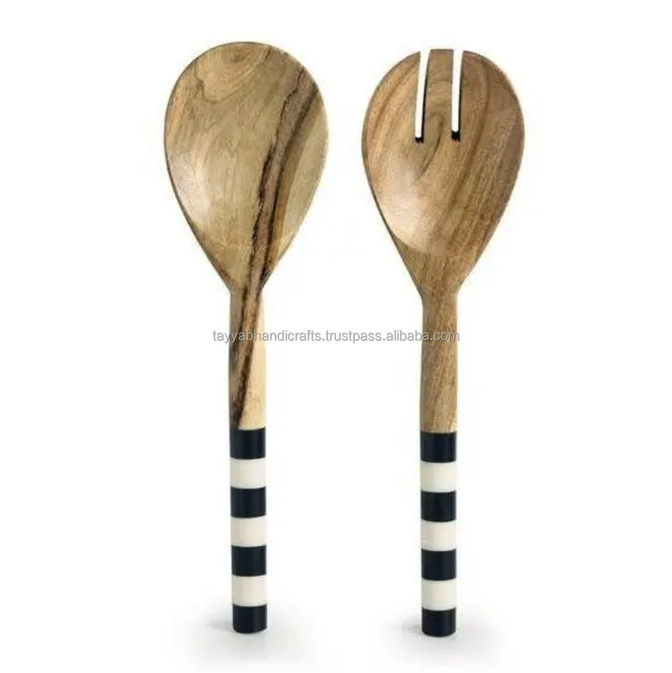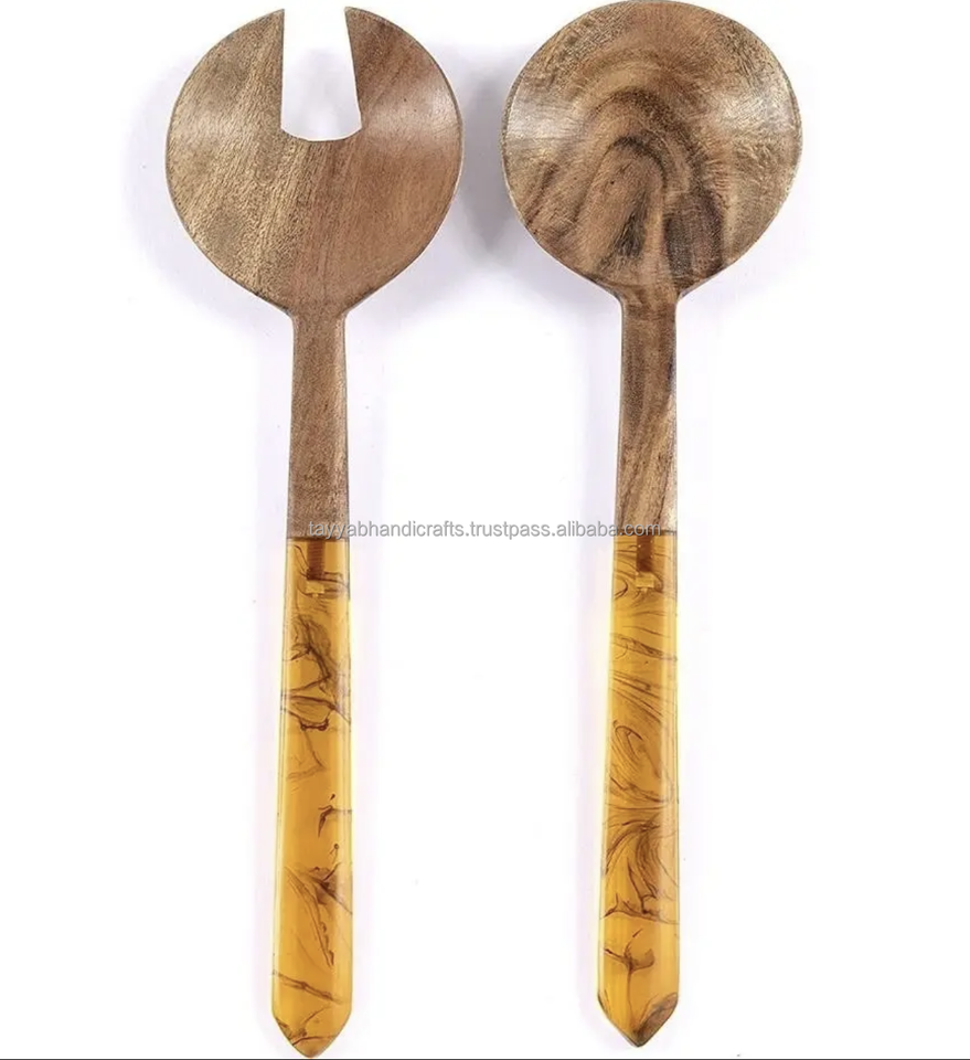 Wooden Salad Servers Handle Spoon Fork Knife Dinner Flatware Royal Set Cutlery Wholesale Resin with Resin Latest