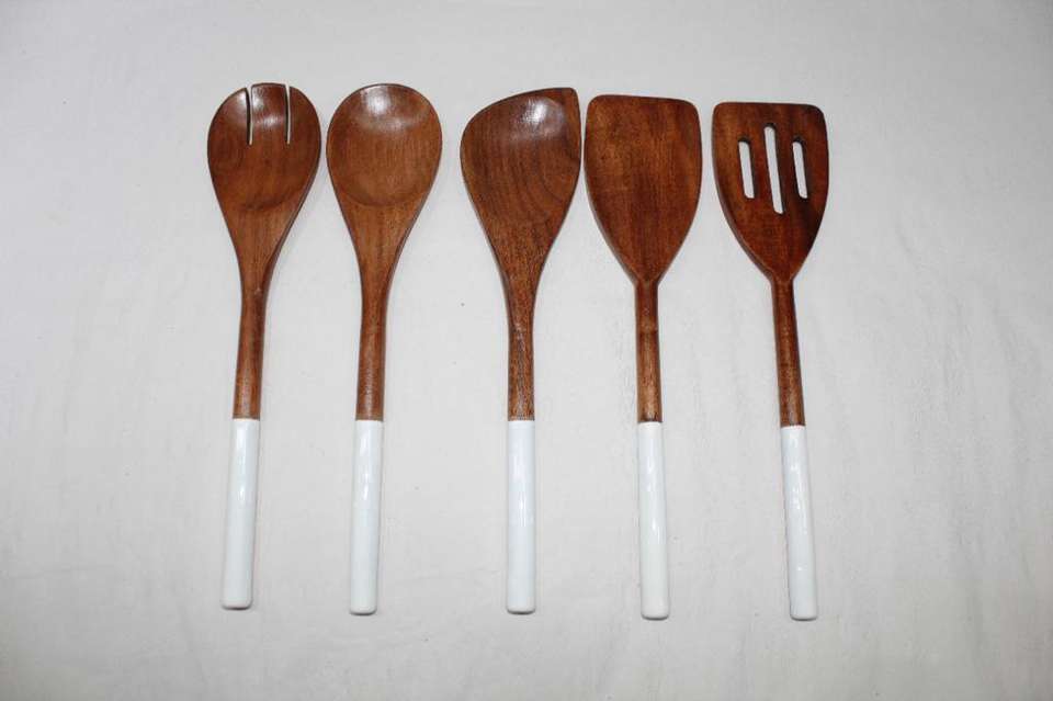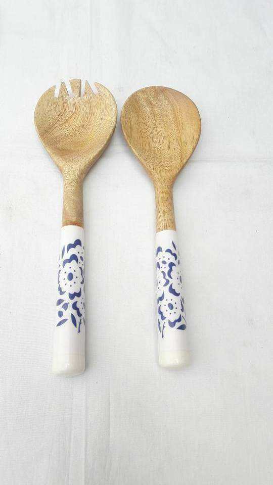 Wooden Salad Serving Spoon and Fork with Resin Handles Ideal for Home Decoration and Kitchen Supplies Stores for Resale
