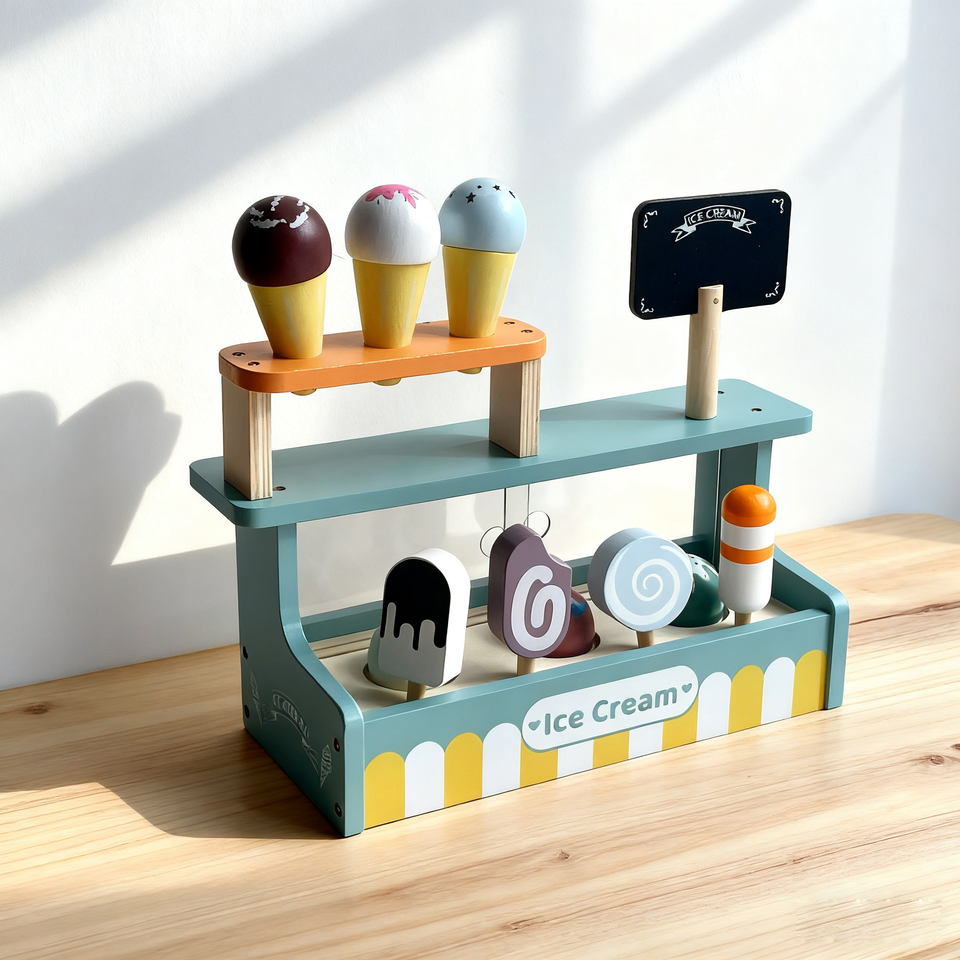 Wooden Serve Ice Cream Counter Toy Set Pretend Play Food Accessories for Kids