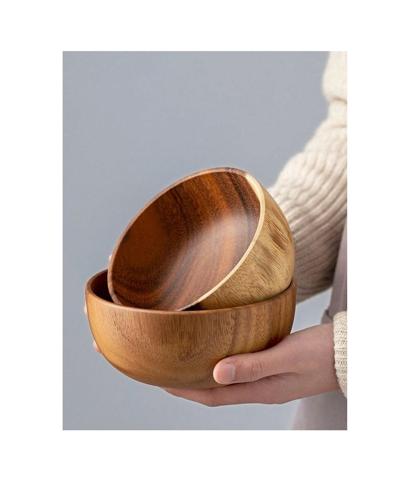 Wooden Serving Bowl for Salad Fruits with Utensils Handmade, Durable and Stylish Natural Wood Tableware Accessory