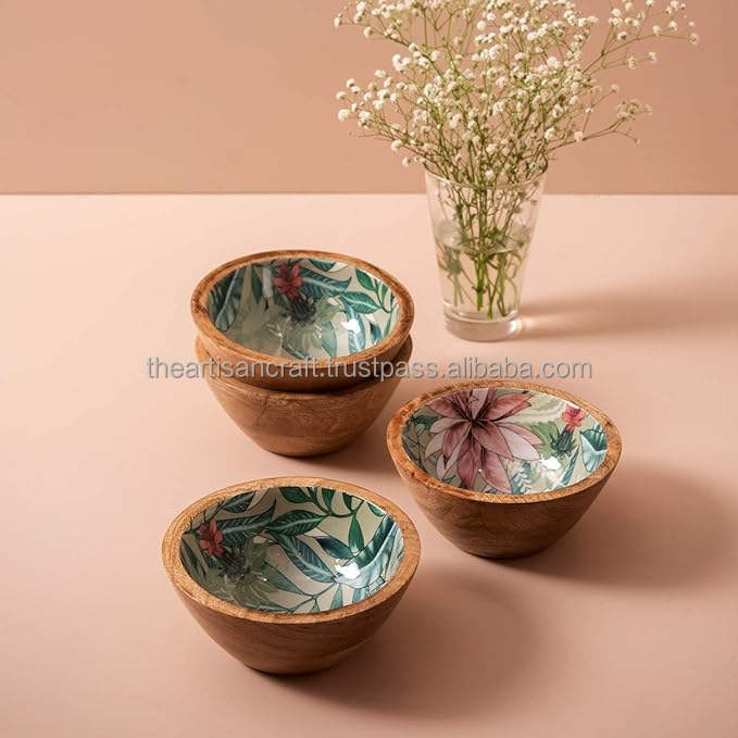 Modern Wooden Bowl with Enamel Print Stylish Multipurpose Bowl for Serving Storage or Display Perfect by Artisan Craft