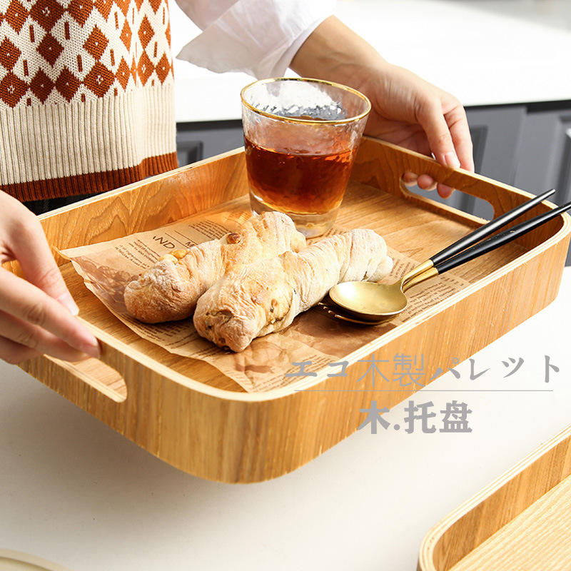 Wooden Serving Tray Rectangular With Handle For Tea Coffee Breakfast Dining