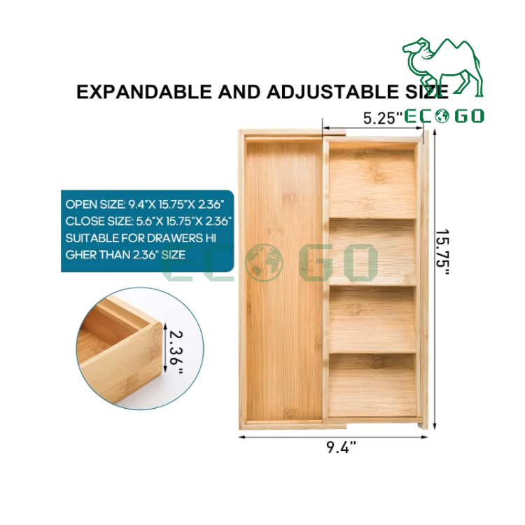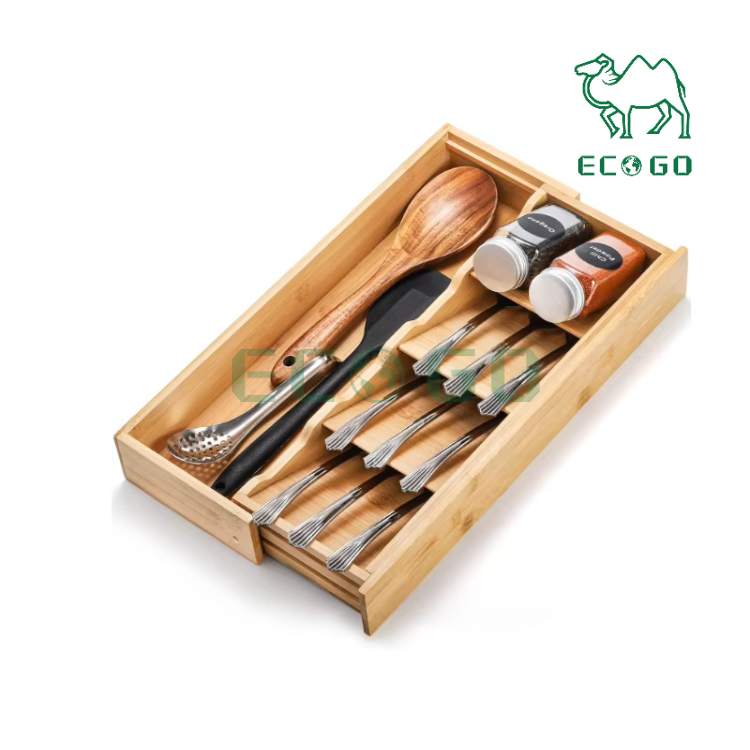 Wooden Silverware Organizer Storage Tray Bamboo Compact Utensil Organizer Cutlery Tray for Kitchen