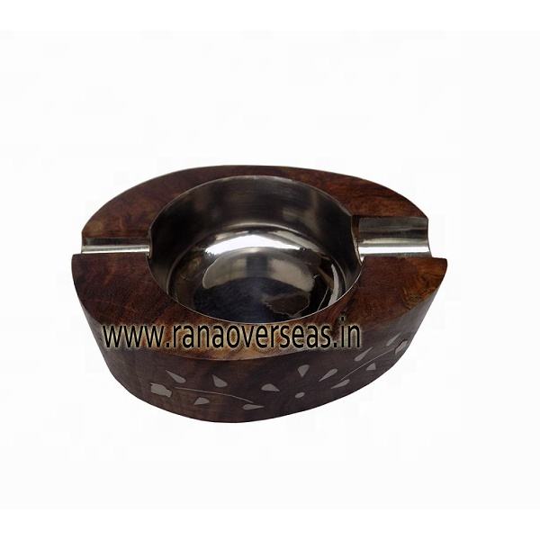 Wooden Smoking Ash Holder With White Inlay Design for Home , Office , Hotel and Restaurant