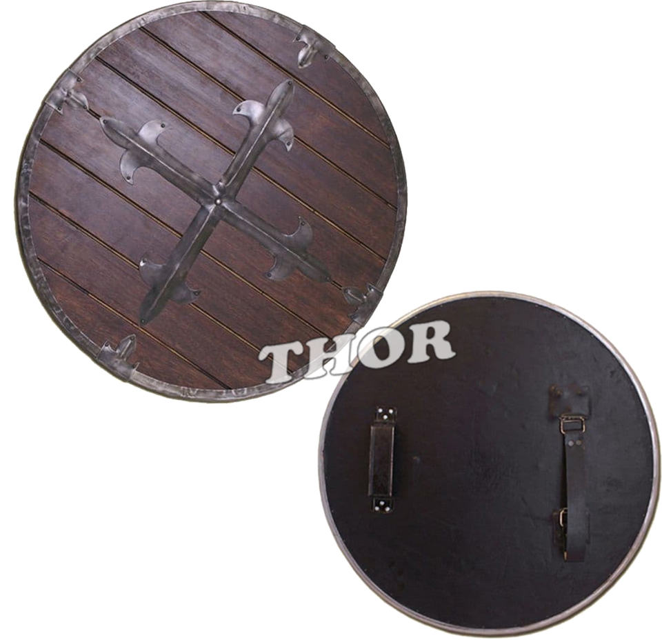 Wooden Spartan Shield 24 Inch Round Armor Shield Costume for Battle Warrior Brown Color