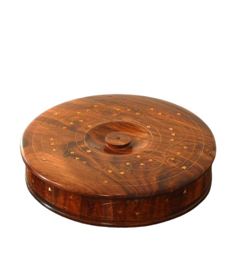Wooden Spice Box Floral Printed Lid Masala Box Set with Spoon Spice Container Masala Dani Rounded Masala Dabba