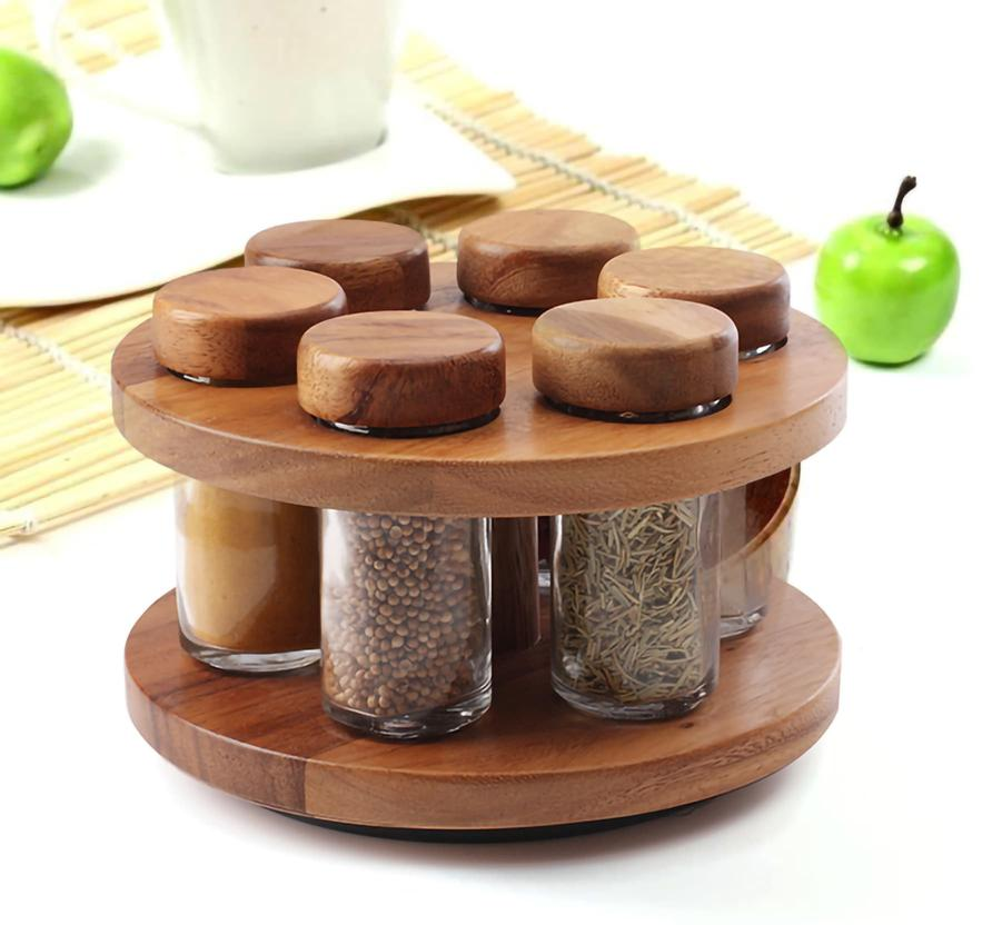 Wooden Spice Jar Rack Round Home Storage and Organizer Rack Shelving Modern Eco-Friendly Wood Jars Rack