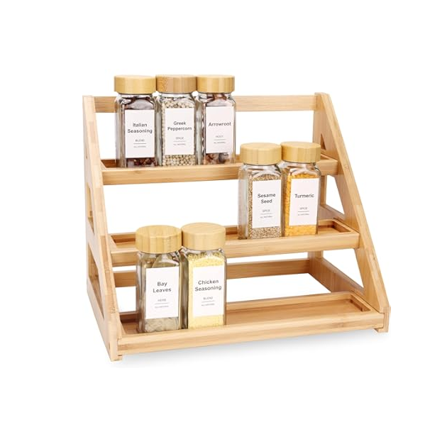Wooden Spice Jar Rack Shelving Modern Eco-Friendly Wood Jars Rack Custom Countertop Decorate item