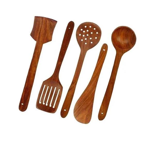 Wooden Spoon Kitchenware Natural Cooking Utensils High Quality Gold Plated Long Handle Eco-Friendly