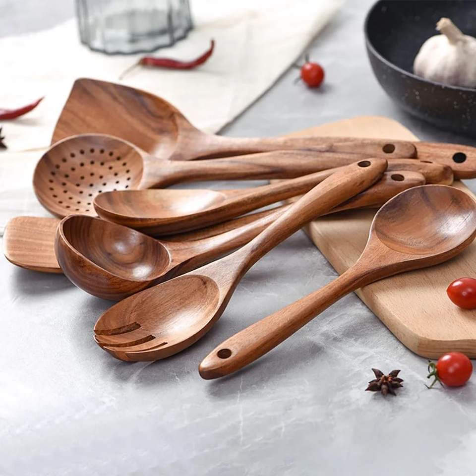 Wooden Spoons for Cooking,Wooden Utensil Set,Wooden Cooking Utensils,10-Piece Wooden Kitchen Utensil Set with Wooden Spoons