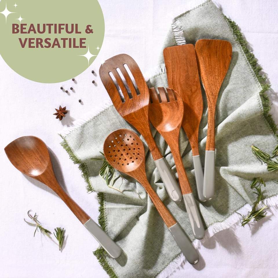 Wooden Spoons for Cooking or Utensils Set, Set of 6 Wooden Cooking Spoons for Kitchen, Non-Stick Cookware Set or Wooden