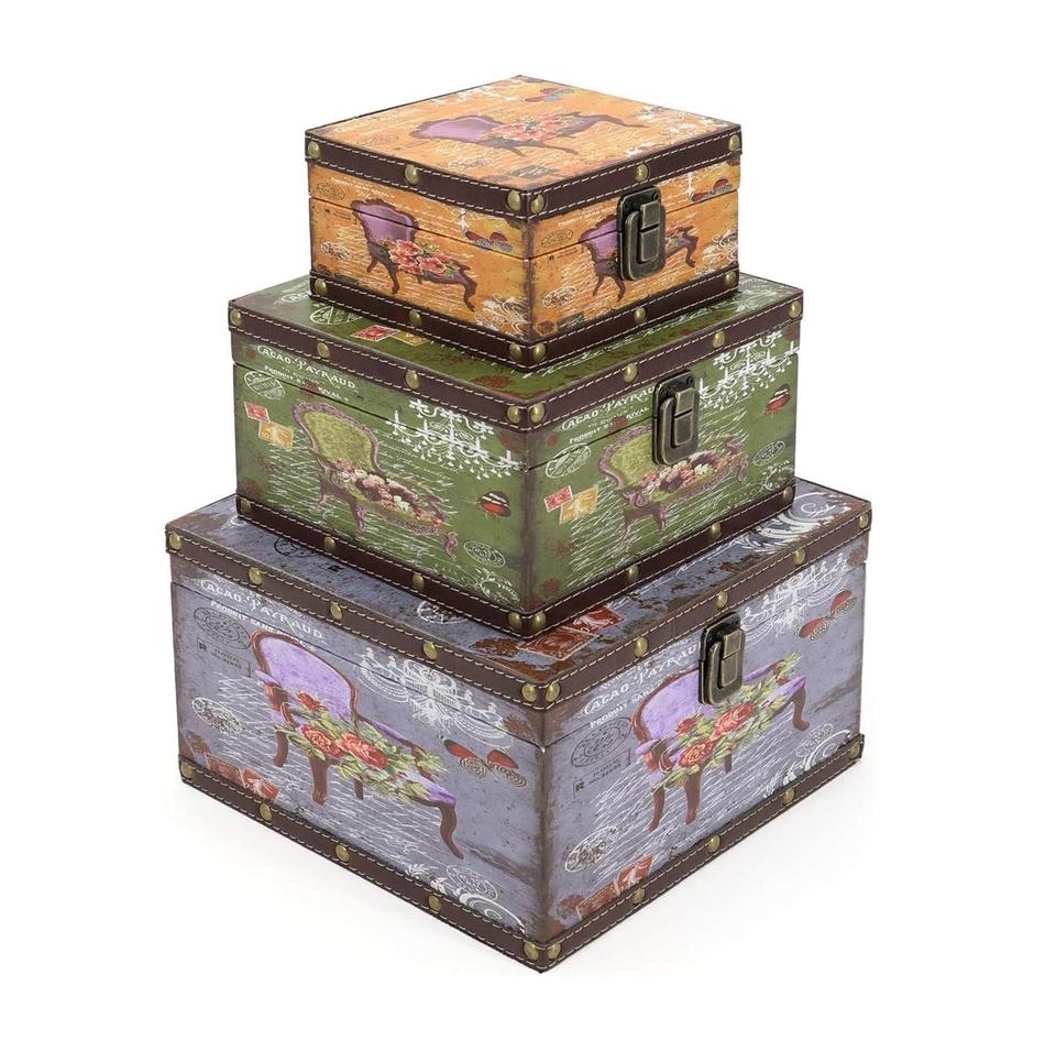 Wooden Storage Box Set of 3 Vintage Decorative Boxes with Lid Home Decor Rustic Antique Box Set for Keep Photos