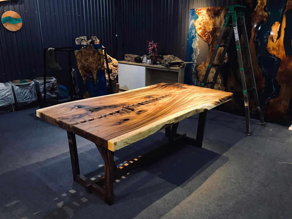 Handcrafted Live Edge Wooden Table With Artistic Bridge Design Unique Art Furniture From Vietnam Strong & Durable Structure