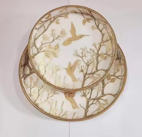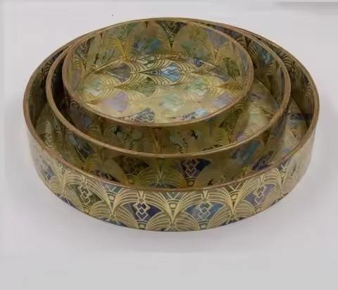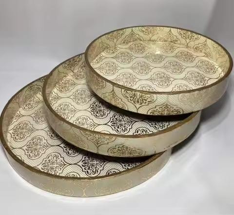 Wooden Tea Coffee Serving Tray With Enamel Printed Pattern For Home Use