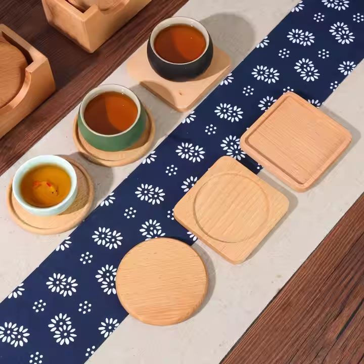Wooden Tea Cup Mat Household Blank Custom Engraved Printed Bulk Round Natural Thick Wood coaster for Drinks by Crescent Crafts