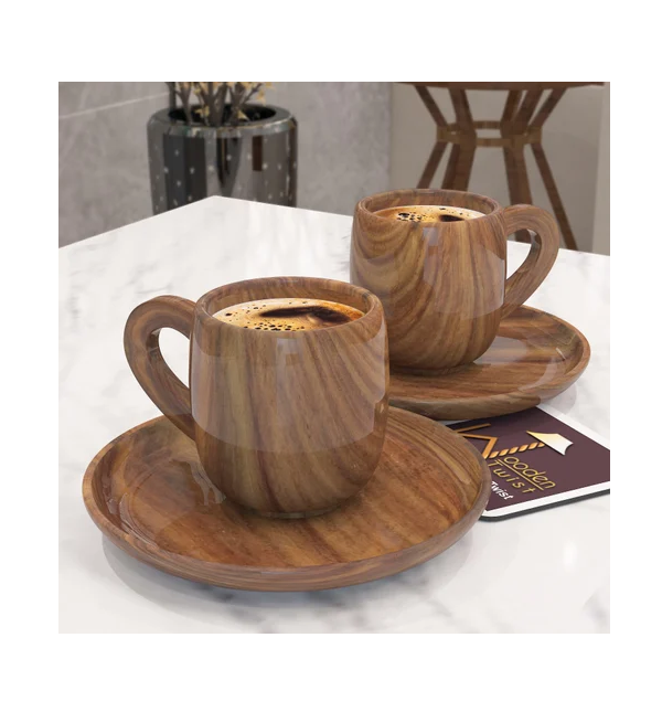 Wooden Tea Cup Saucers Set Top Quality with Insulation Handmade Unique Design Made in India
