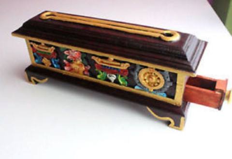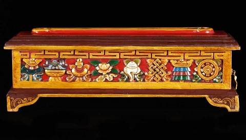 Wooden Tibetan Incense Burner:Auspicious signs carved on front