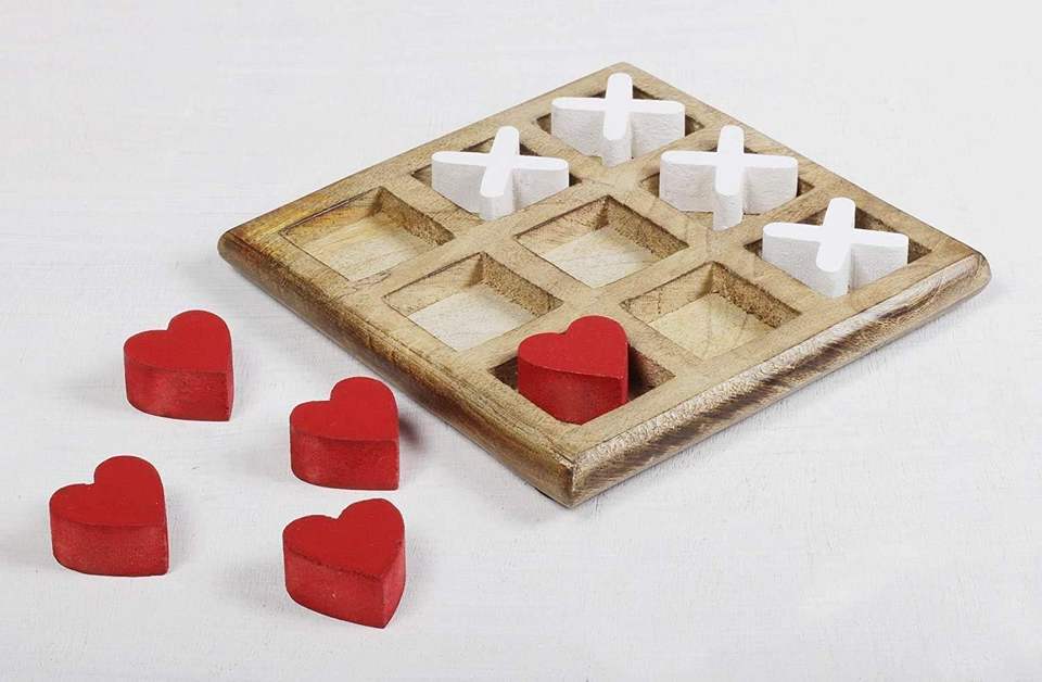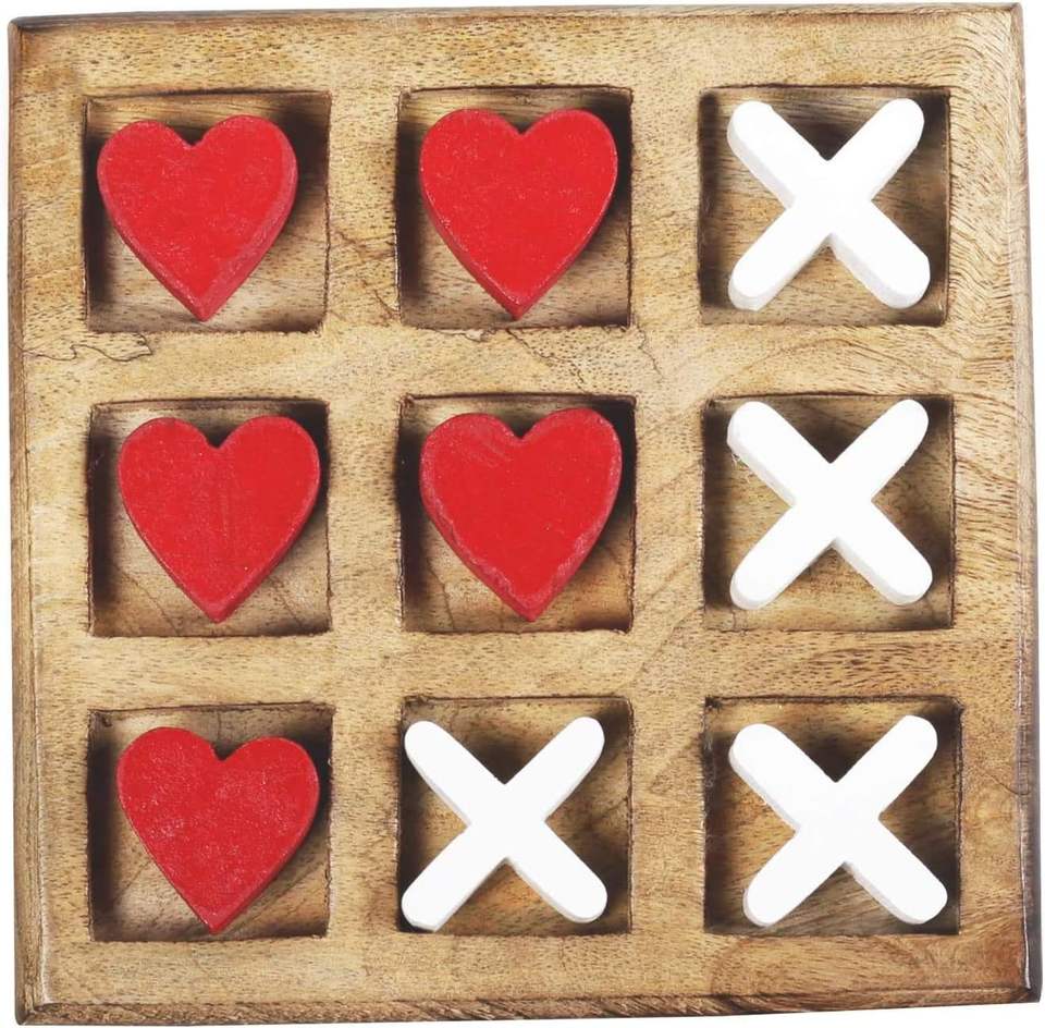 Wooden Tic Tac Toe Game for Valentine's Day Laser Cut Noughts and Crosses X's and O's Painted Technique