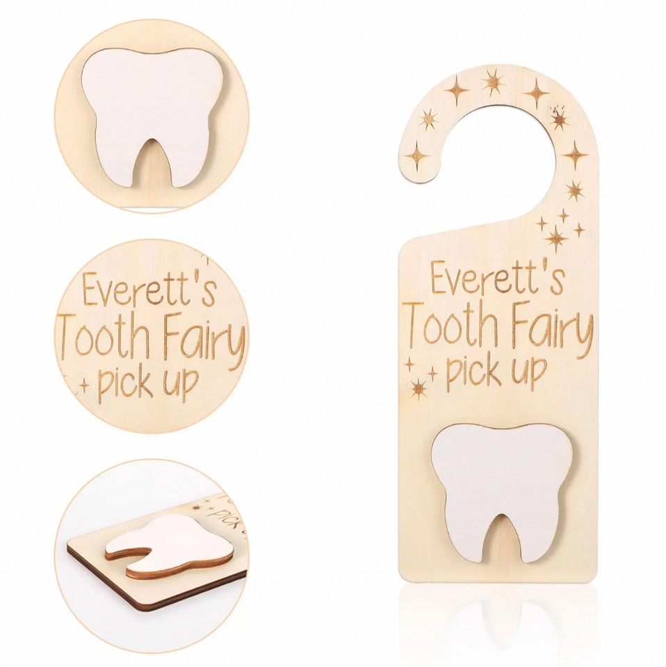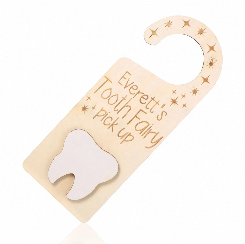 Wooden Tooth Door Hanger Box with Money Holder for Keepsake Tooth Pick up Box for Boys Girls Room Decor