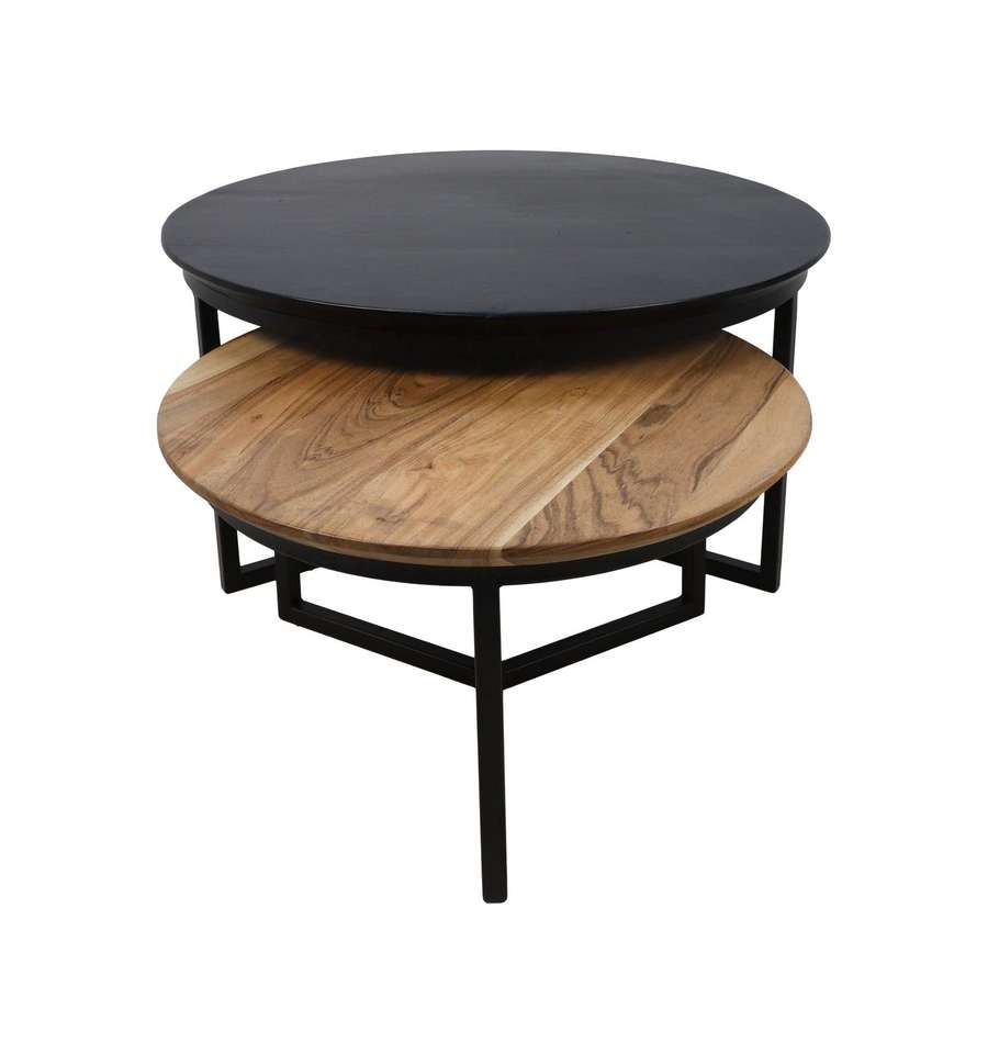 Wooden Top Modern Luxury Nordic Nesting Round Coffee Tea Table Set of 2 with Folding Metal Frame Stylish Living Room Furniture