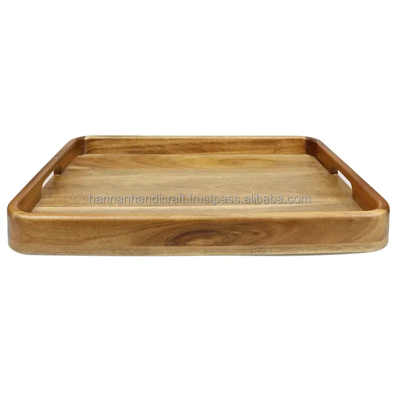 Wooden Tray for Decoration, Dining Room Table Wooden Tray for Serving, Dining Table Organizer, Rectangular Round Handle Set 3