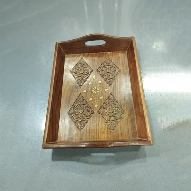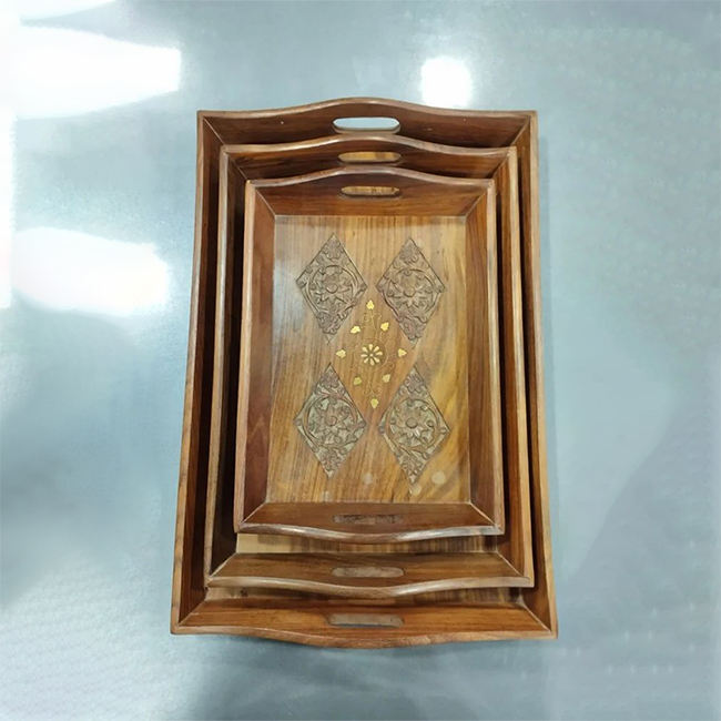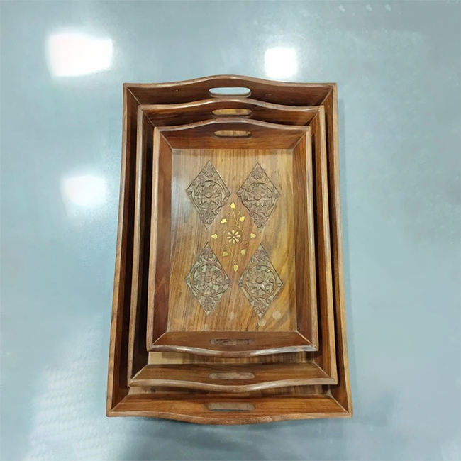 Wooden Trays with Brass Inlay best for serving snacks customised unique set of wooden tray Burnt texture