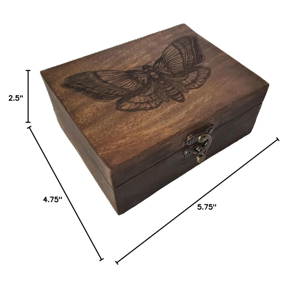 Wooden Trinket Jewelry Box Death Motif Butterfly Engraved Keepsake Mango Wood Storage Box for Gifts and Tarot Lovers Wholesale