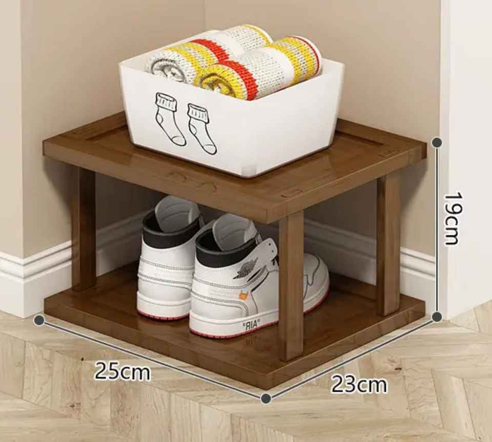 Wooden Two Tier Corner Shoe Rack Organizer Compact Storage Shelf Stand for Sneakers Socks Box Entryway Home Footwear