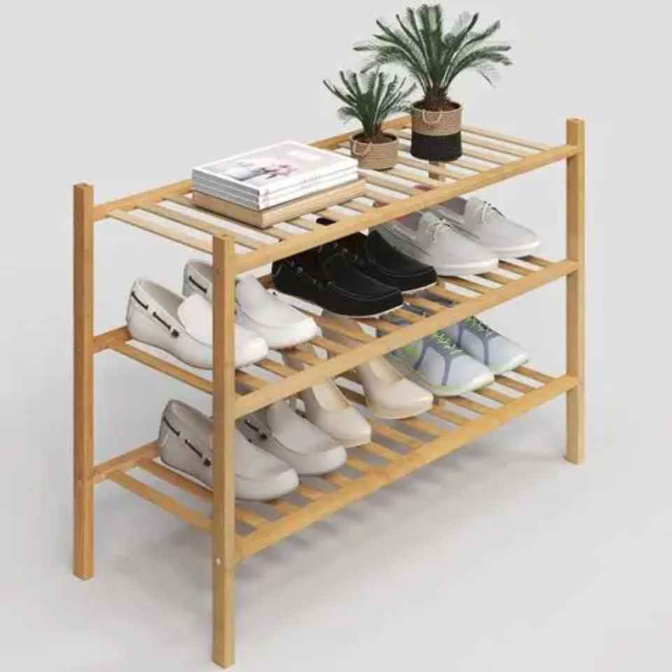 Wooden Two Tier Shoe Rack Organizer Bench Style Storage Shelf Stand for Slippers Shoes Entryway Home Footwear Holder