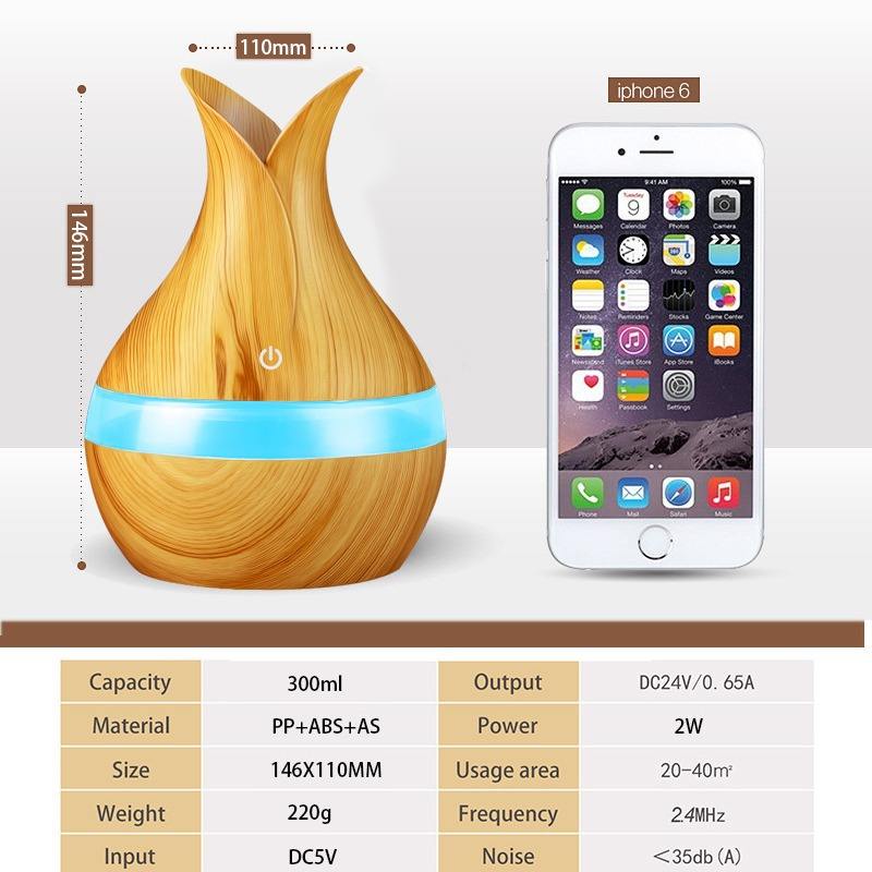 Wooden Vase Aroma Diffuser USB Humidifier 0.5L Remote Control Ultrasonic Fog Type For Home Office