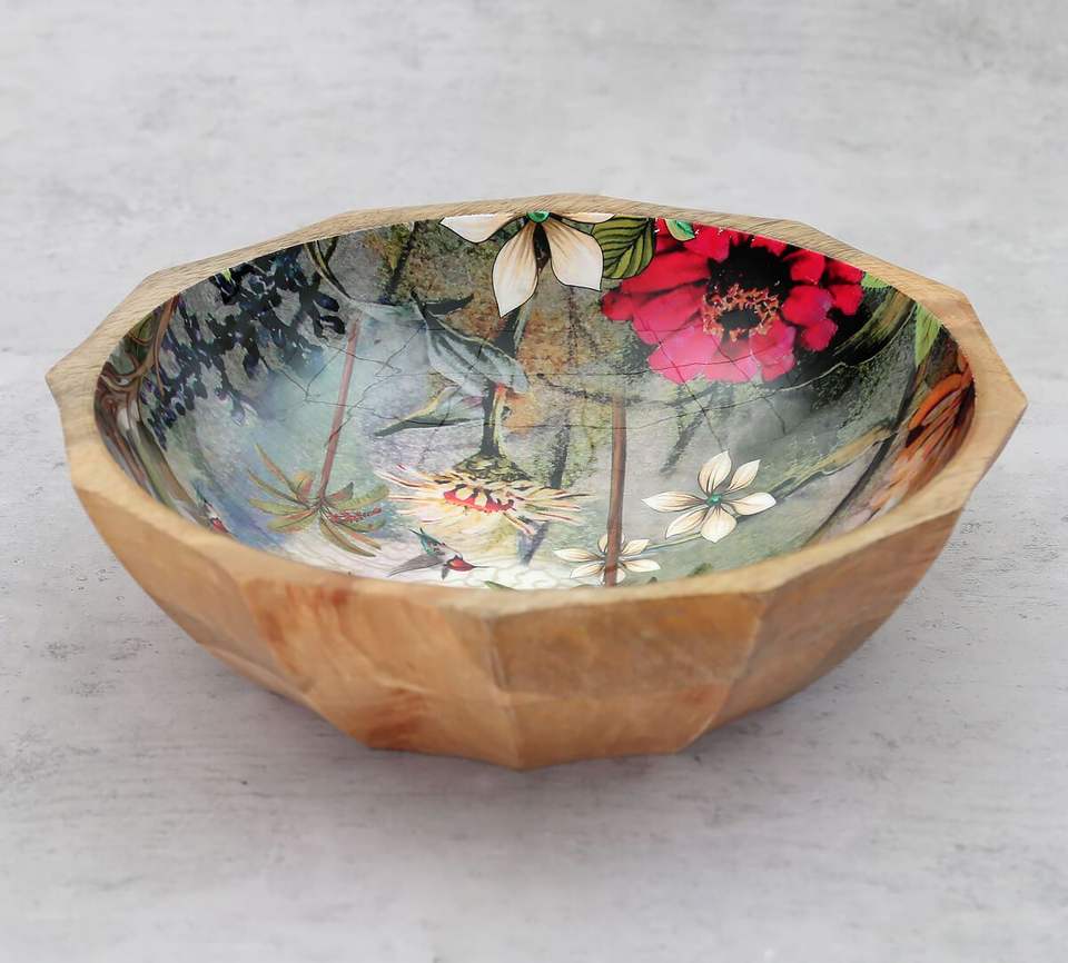 Wooden Vegetable Bowl Set for Snacks Mixing Bowls for Kitchen Salad Bowl Printed Indian Manufacturer