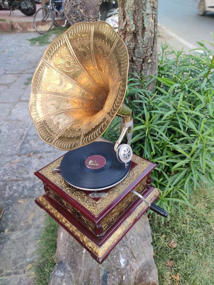 Wooden Vintage Style Brass Fitted Gramophone Musical Item Musical Instrument Record Player Vintage Music Player Table Decor
