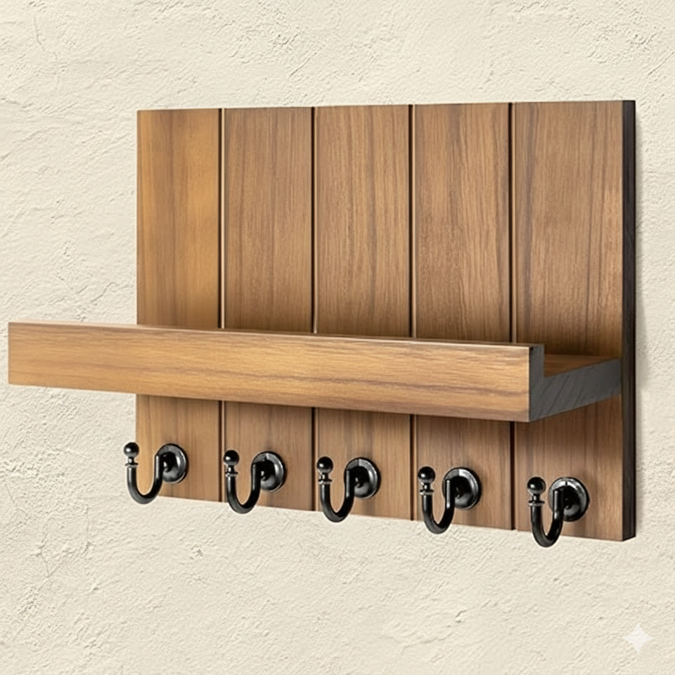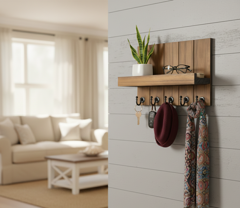 Wooden Wall Mounted Key Holder & Entryway Organizer Rustic Key Hanger Rack with Hooks