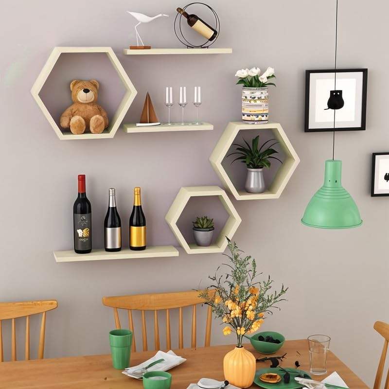 Wooden Wall Shelves for Living Room Wall Mounted Set of 6 Pastel Green Hexagon Shelves for Photos Plants and Wall Decor