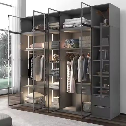 Wooden Wardrobe Flat Door Bedroom Simple Modern Economic Glass Door Simple Storage Cabinet Large Wardrobe