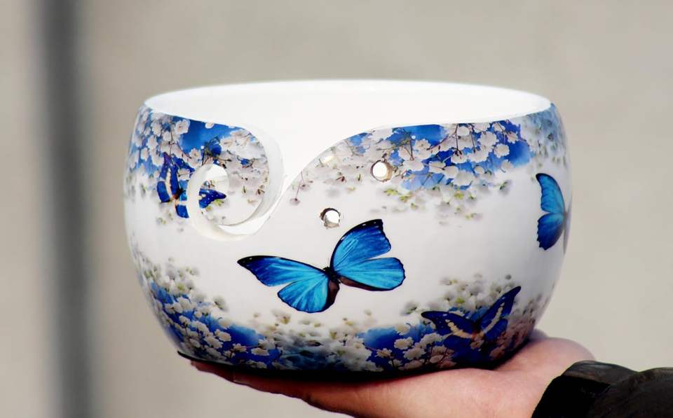 Handmade 7 X 4 Inches Beautifully Crafted Wooden Yarn Bowl Holder Storage Bowls for Knitting Yarn Ball Storage