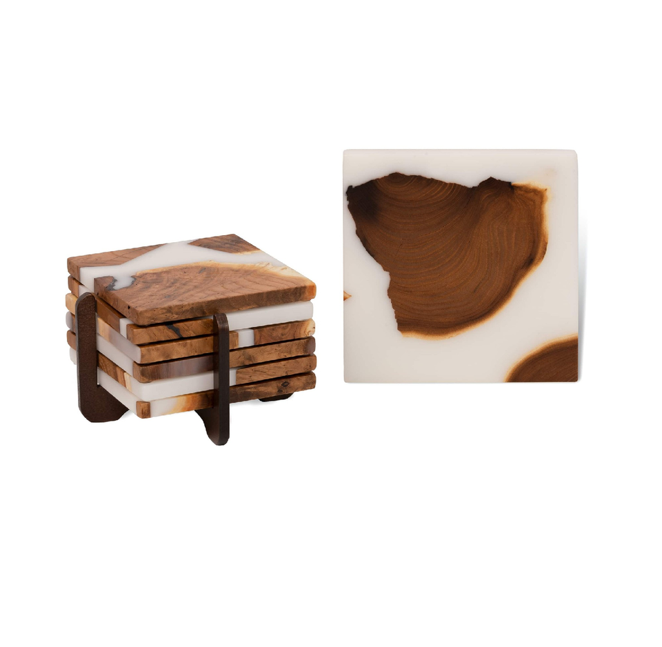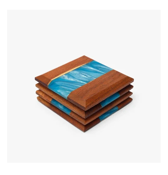 Wooden & Yellow Resin Coaster for the Dining Table Natural Wood & resin coaster at Lowest Cost Products