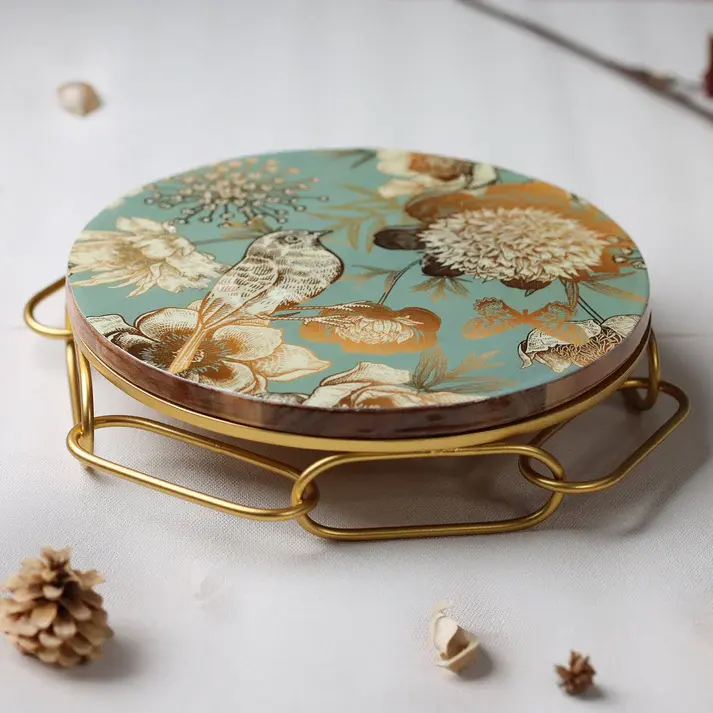 Wooden and Metal Food Dessert Cake Stand Superior Quality Gold Plated Solid Wood Cake Stand at Cheapest Price