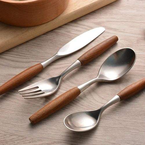 Wooden and Stainless Steel Cutlery Set for Eco-conscious Households and Premium Kitchen Tools