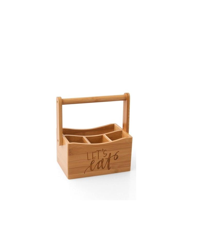 Wooden caddy for outdoor barbecue gatherings carrying sauces mustard ketchup plates napkins drinks utensils for easy serving