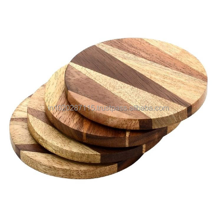 Wooden coaster set for dining table decoration rustic farmhouse style durable wood drink coaster for home and office use