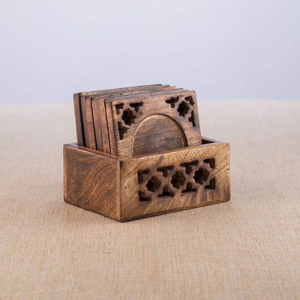Wooden coaster set for tea coffee cups dining table kitchen office home decor natural finish handcrafted ecofriendly