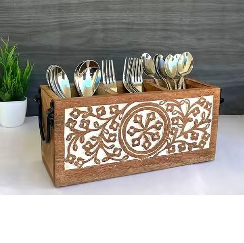 Wooden flatware storage Best Quality Wooden Cutlery Holder at Cheap Price Metal Spoon & Fork knives Sets