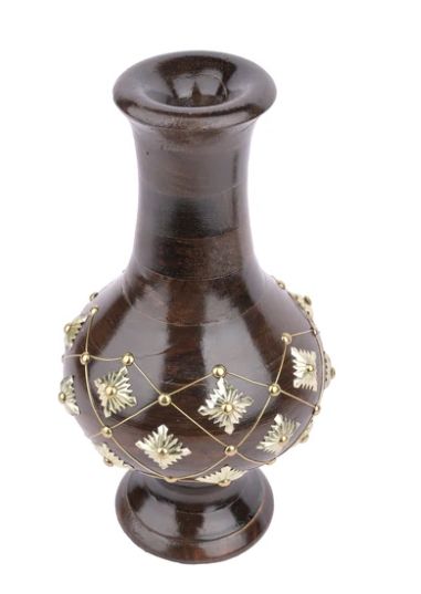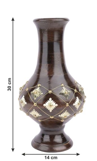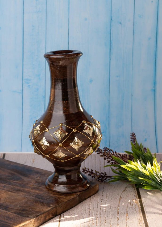 Wooden flower vase with brass decoration Rustic Long Wooden Flower Vase Elegant Decor for Home Office Sheeshamwood