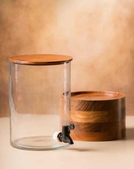 Wooden glass beverage dispenser Wood base drink dispenser Luxury drink dispenser with tap Glass juice dispenser with wood stand