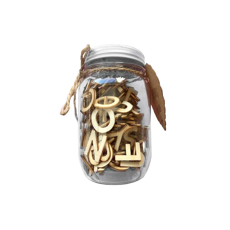 Wooden letters natural in screw-top jar 182pcs