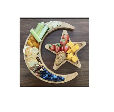 Wooden moon star tray Tableware Eid Mubarak Party Serving Tableware for Breakfast Dinner Dessert Pastry ware use
