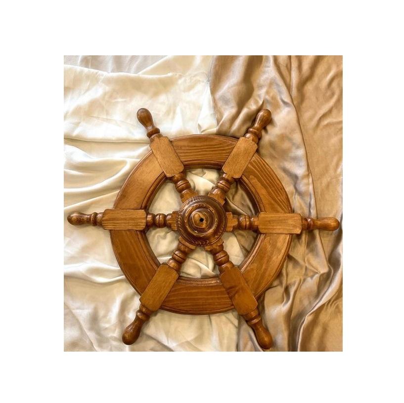 Wooden nautical wall decoration with ship wheel anchor rope and sailboat rustic handmade coastal home accent