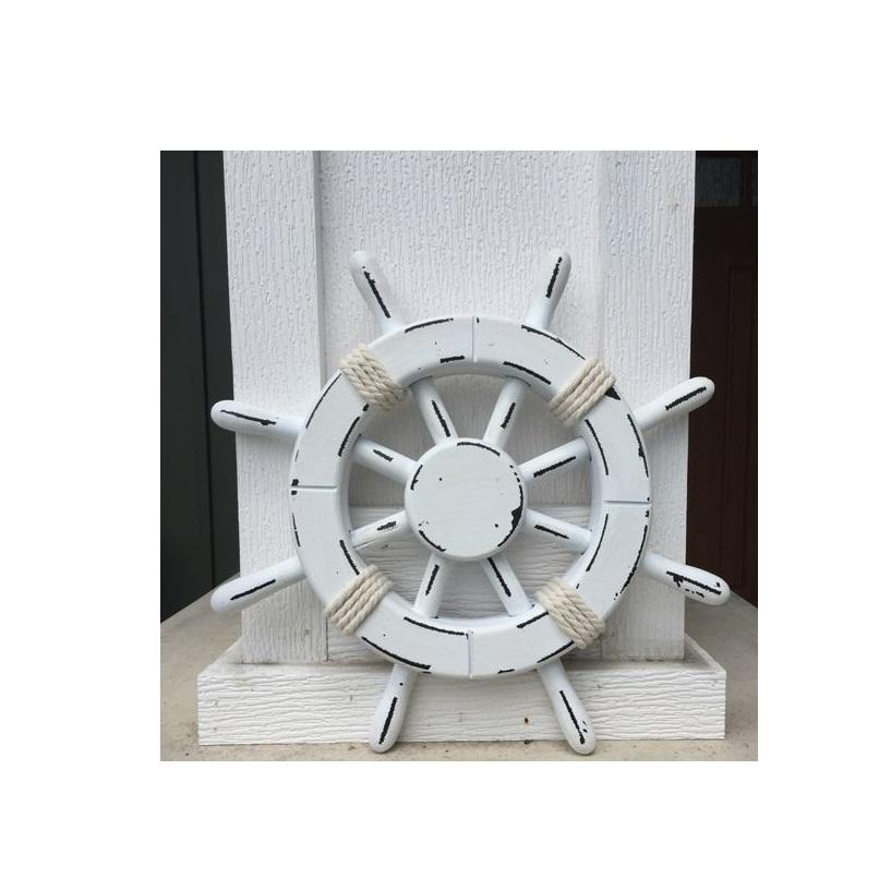 Wooden nautical wall decoration with ship wheel anchor rope and sailboat rustic handmade coastal seaside beach home accent