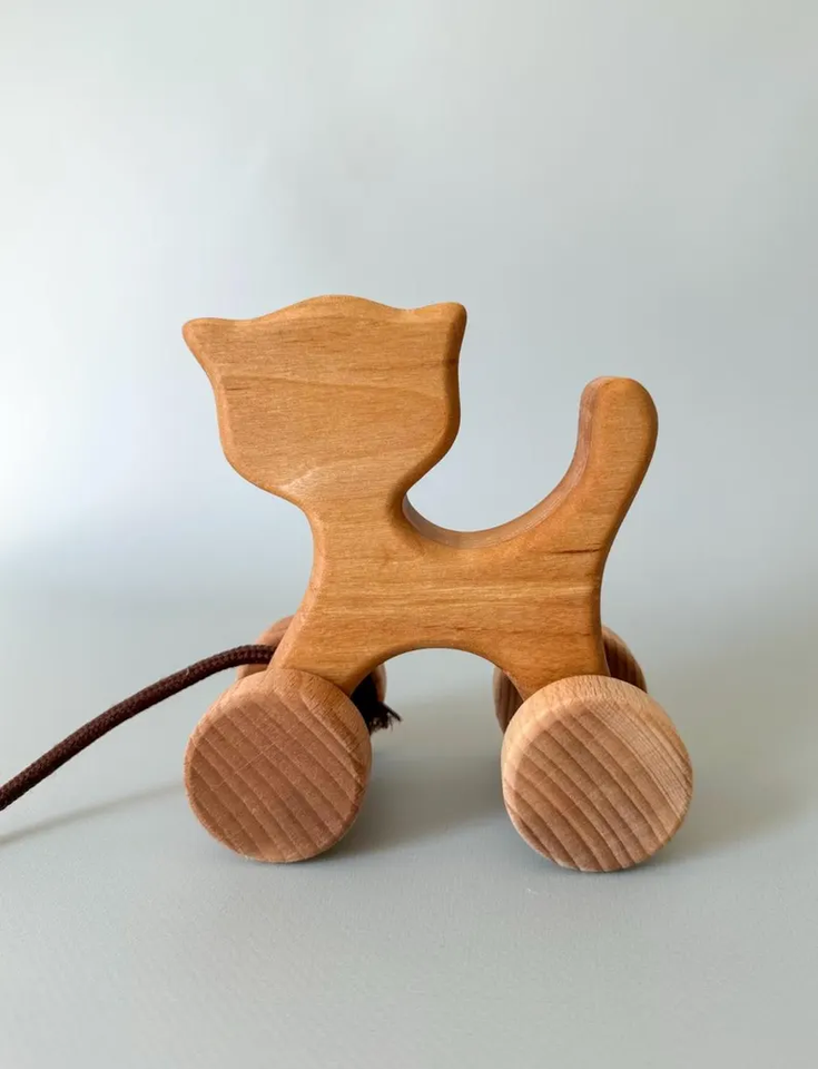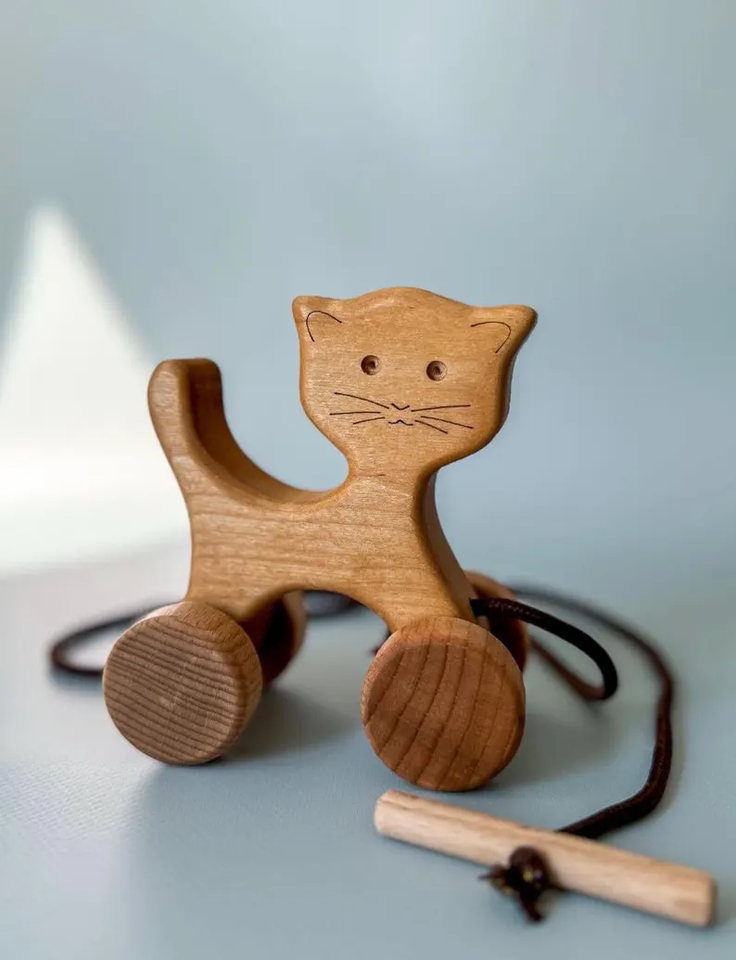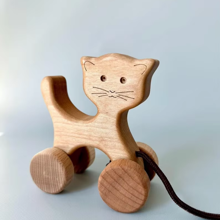 Wooden pull push Cat toy Montessori Educational toys for 1-2 year old Toddler gift Animals on wheels for kids Baby Birthday gift